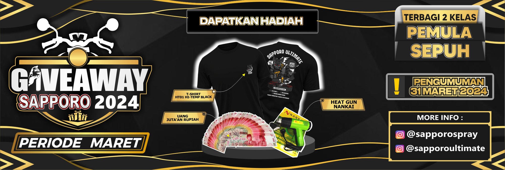 Kami sadar bahwa Sapporo berkembang karena dukungan para Sahabat Sapporo. Tujuan utama dari event giveaway ini adalah MENGAPRESIASI hasil karya para Sahabat Sapporo. Oleh karena itu, kami KONSISTEN mengadakan giveaway setiap bulan.
